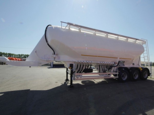 Оснастка — Шкворень диаметром 2"; Механические опоры (24 т) BPW; шаровые краны; напорно-всасывающие рукава; сдвоенный пластиковый пенал для шлангов DN 100; виброматы Flutex MUHLEN SOHN; алюминиевые крышки горловин; площадка обслуживания; ящик для вещей в опорной консоли; манометр системы пневморазгрузки;